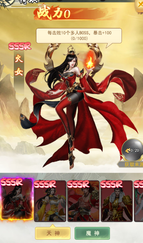 玩家获得神将激活后可以提升大量的战力,神将有多种属性。神将出战后战斗时可以使用神将的主动技能,造成强力效果。