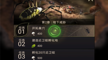 2、各种 任务 和挑战,操纵不同的蚂蚁工作,更好地建立王国;