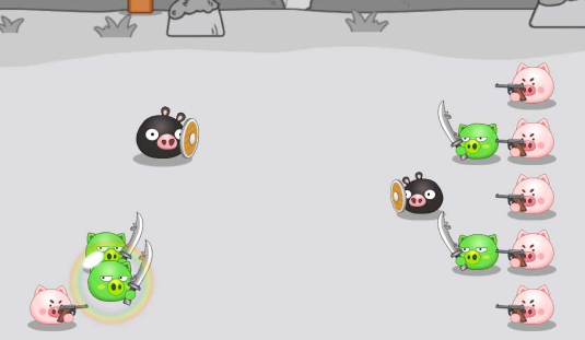 3、畅爽欢乐的游戏过程,合并猪头, 升级 兵种,尽情挑战。