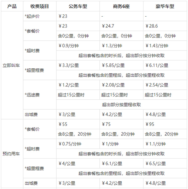 2、立即叫车的其他时间段计价规则同预约用车现有规则;