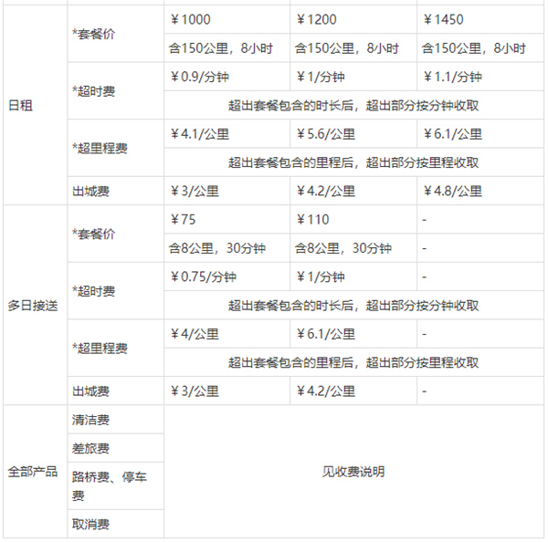 服务类型:随叫随到、预约用车、接/送机、日租/半日租