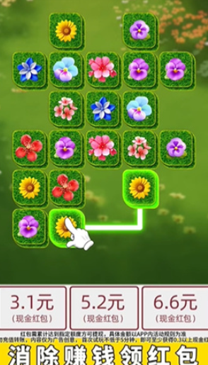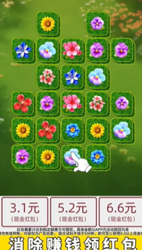 能赚钱的消除类休闲小游戏,这款游戏里主要的元素是各种各样的花朵,玩家需要消除掉所有花朵才能获胜。快来挑战吧。
