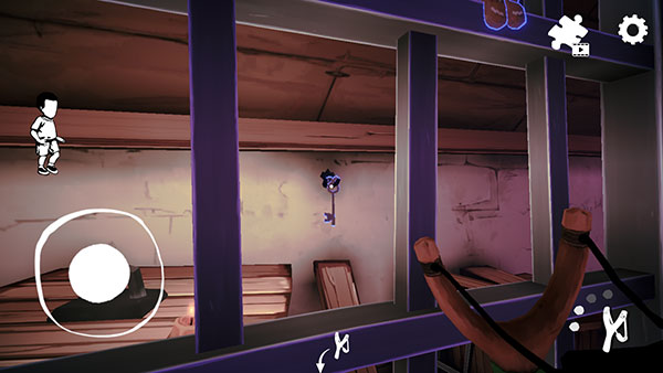 3、此时看向牢笼左侧,用手中弹弓将墙壁上的钥匙击落下来。