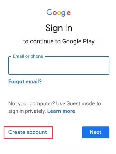2、没有谷歌账号的,先点击登录,再点击下方的“create account”