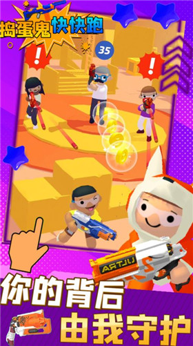 捣蛋鬼快快跑是一款卡通风格的欢乐射击游戏,为了提高你的射击技能,战斗策略仍然会给你带来最大的乐趣,玩家可以使用各种武器,这些武器可以让玩家更有效地对抗敌人。玩家可以改变枪的皮肤,你面对的战斗和挑战越多,你的射击就越准确,游戏中的武器也有伤害机制,帮助玩家获得更强大的武器。