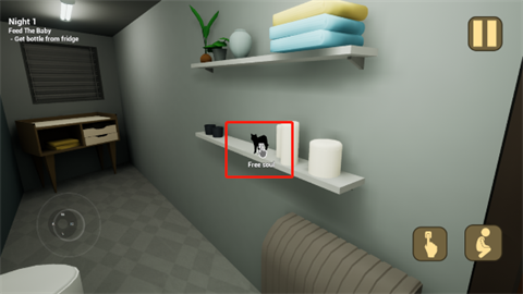 1、点击右下角的手势图标,拿起婴儿,然后把它扔在沙发上。