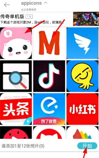 在页面中选择你要拼接的图片,点击“开始”选项。