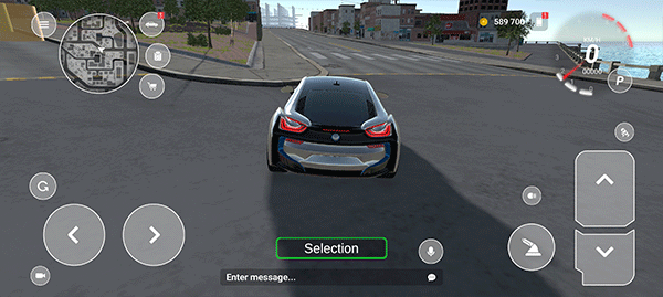 左上方是游戏的城市地图,右上方是车辆的速度表;
