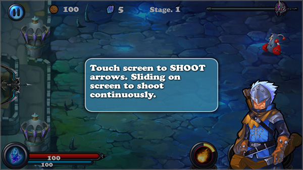 2、进入关卡,你需要用箭射杀怪物防守城堡
