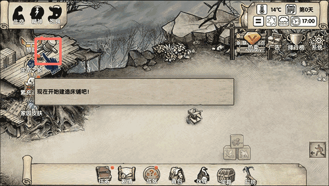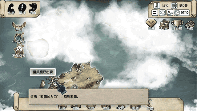 1. 运行游戏,完成石块捡取任务后,就能回到家园开展建设。