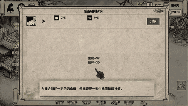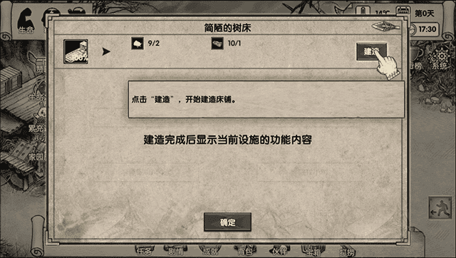 在简陋的树床界面找到并点击“建造”按钮选项;