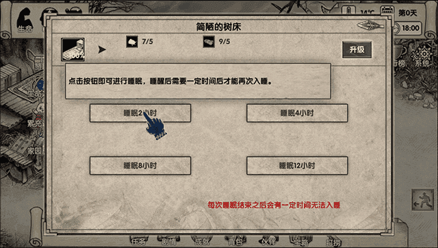 接着,在这里选择睡眠2小时;