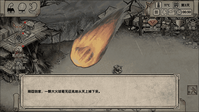 然后,在玩家下线一段时间后,再次回到家园会有出现随机事件的情况,这次出现的是一次大火球袭击事件;