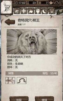 建议在竹林打完之后直接去丘陵,进入丘陵隐藏关打败熊王可以100%获得兽皮和兽筋!