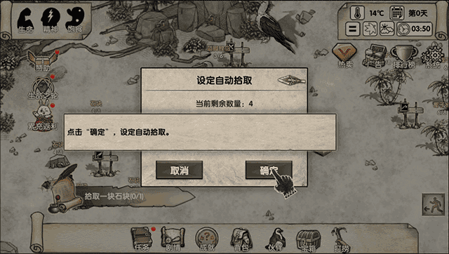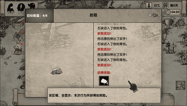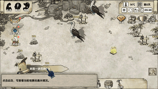 现在在沙滩上点击石块进行拾取;