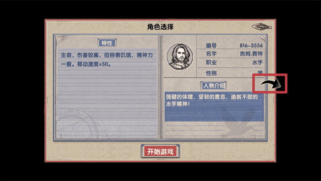 在这了按红色方框内的选项选择好角色后找到并点击“开始游戏”按钮选项;
