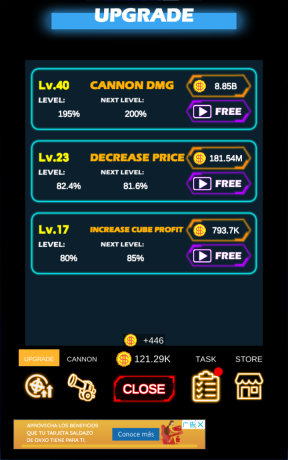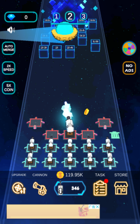 3、在游戏里,玩家能够把两个一样的炮台合成为一个更高级的炮台,随即解锁新炮台的升级按钮,通过升级让新炮台变得愈发强大。