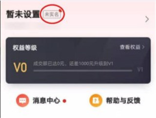 3、打开个人中心页面,刚注册未实名,选择未实名或右上角的箭头;