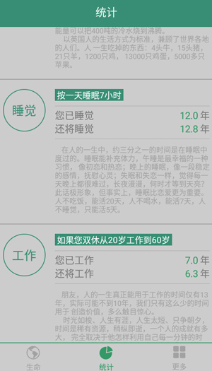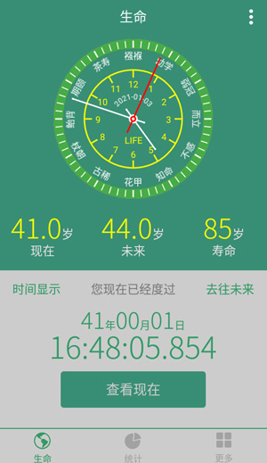 3、计算现在和未来生命长度,并加入时间倒计功能,让人可以感觉到时间的宝贵。