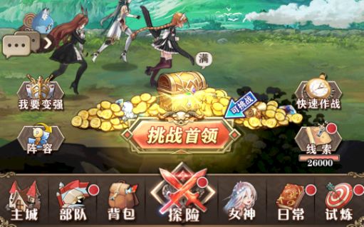 日常副本页面内可获得大量的经验、魂晶、伙伴碎片、净化以及女神强化物。根据玩家的战斗力和等级,在副本内可获取的收益也会慢慢提高。副本每日可免费进行两次扫荡,而扫荡的前提条件只有两个,分别是战斗力评级以及至少通过1次即可。