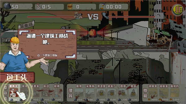 当僵尸来势凶猛时可以多添加一些建筑工加入战斗;