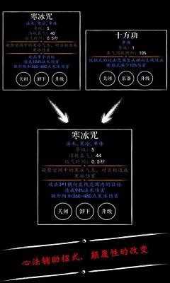 招式的效果并非固定,可以搭配多个心法变得更强甚至转换成相反的属性,千变万化而不穷。