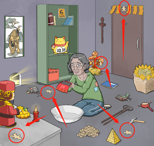 1、最后的彩票需要先找到途中的五只小人,然后放到女人面前的盆里,就能百分百全中彩票。