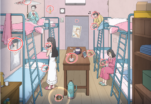 2、黑猫要点击两次,第一次将黑猫拖出来,第二次点击黑猫找到不合理的地方。