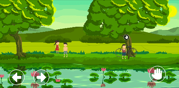 5、玩完木头人游戏后向右移动到树下自行车边,与自行车交互进入剧情,正式开始游戏。