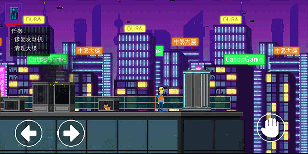 7、修好发电机后继续向左移动至楼顶尽头,出现交互图标后点击右下角按钮进入清理大楼的界面,一共需要经过四次清理,摆好信标即可通过。