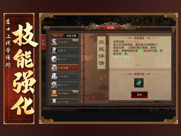 道士拥有各种增益减益技能,宝宝攻击的同时,还能释放控制技能。越打越强