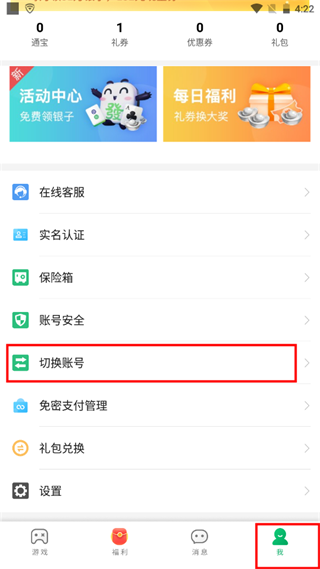 5、进入“我的”页面,点击“切换账户”,添加或注册其他账号即可完成切换。