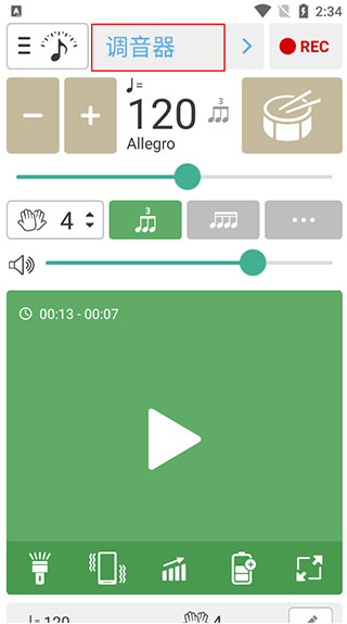 如果扬声器音量限制或嘈杂的背景噪音导致你你听不见节拍器的声音,你可以打开闪光灯节拍器模式。在这种模式下,你可以很容易地看到闪烁中的节拍。将闪光灯指向墙壁,那么整个墙面可以闪耀出节拍。v7.19版本