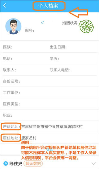 4、查看个人健康档案四个信息模块内容;