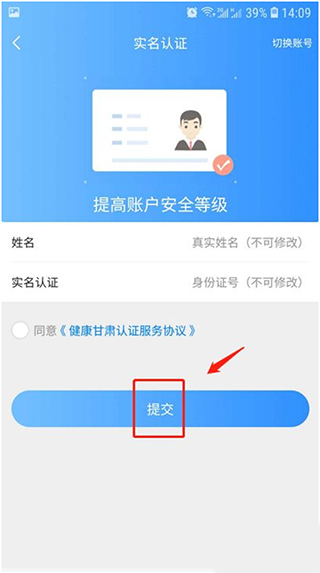 4、注册后进入实名认证界面,输入姓名和身份证号,点击“提交”进行实名认证。
