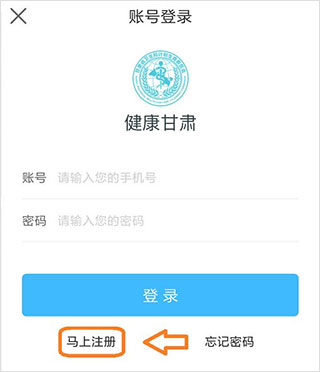 1、在本站下载健康甘肃并注册认证,点击“马上注册”进入注册页面;