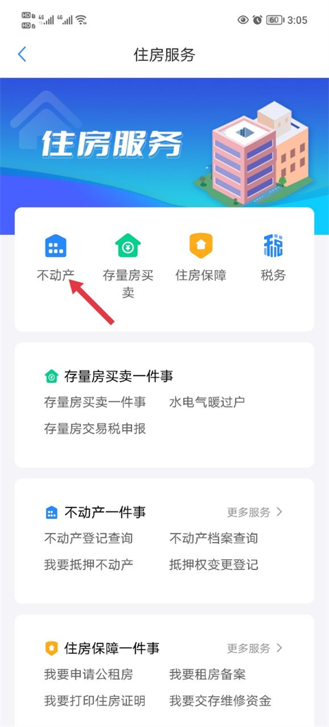 2、然后点击不动产功能。