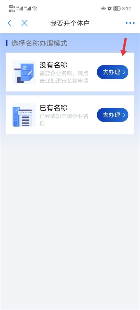 5、如果没有企业名称的需要先点击办理名称。