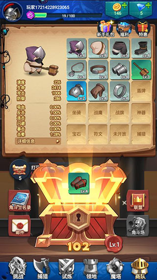 3、如果出现重复的装备,就需要玩家选择是装备上还是出售掉,此时大家要对比两件装备的速度、生命、攻击和防御等数值,选择属性值高的装备,就把剩下的出售掉;然后继续开宝箱;