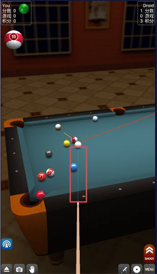 4、游戏画面效果和操作方式均有可圈可点之处,同时包括操作时将球杆向后拉出一定的距离后就出现代表力度和方向的轨迹线。