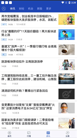 点击资讯,可以看到各种关于股市方面的新闻