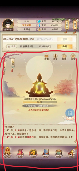 为防止有人不理解,再多说一句,境界越高,修炼速度越快(而且境界高可以进新门派换秘诀),而肉身是不提速修炼的,所以要先境界再回头点肉身。
