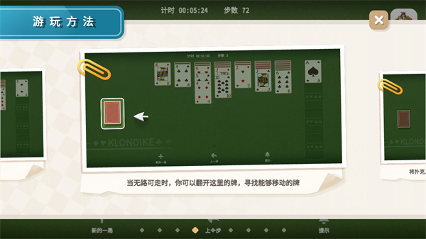 4、当无路可走的时候,你可以翻开这里的牌,寻找能够移动的牌;
