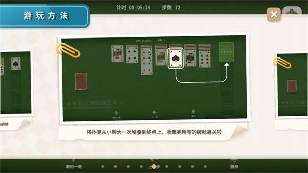 5、将扑克从小到大一次堆叠到终点上,收集玩所有的牌就通关了;
