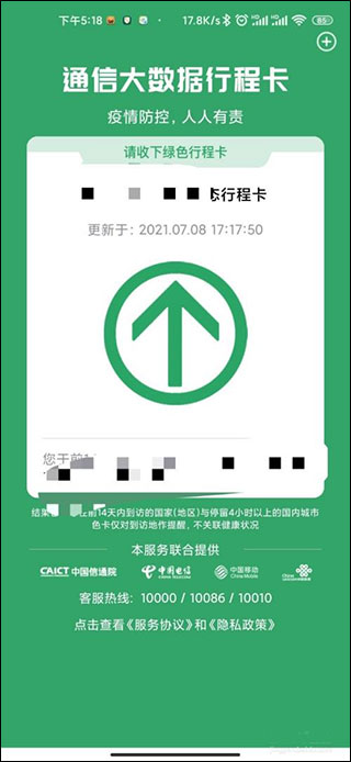这是一款目前非常实用的行程轨迹记录软件,并且支持中国电信、中国移动、中国联通三大运营商利用手机信令数据,根据用户手机连接的基站位置来获取信息,因此手机用户可以通过该服务查询自己过去14天内到过的所有地区信息,在这个特殊时期,这能极大程度地保障你和他人的安全。此外,新版本增加了蓝牙近距离接触提醒功能,若与您有过近距离接触的人被确诊或疑似为新冠肺炎患者,该服务将更迅速地提醒您进行自我隔离观察。因此,这是一款您不可或缺的安全软件。相信不久后,疫情就会消散,现在就让我们下载通信行程卡以保护自己吧。