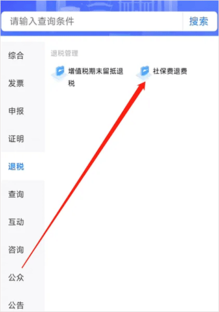 2、进入到界面后,选择退税功能,点击【社保费退费】;