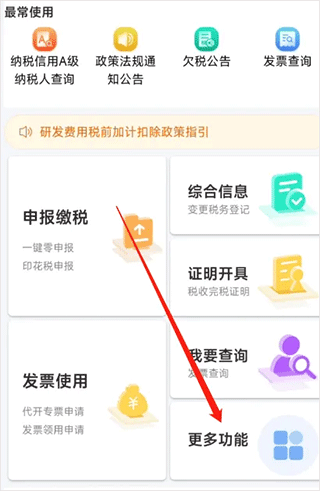 1、打开楚税通app医保缴费,选择【更多功能】选项,点击跳转进入进行下一步操作;
