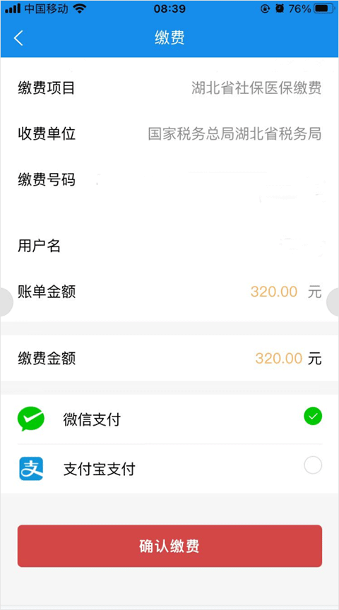 3、生成缴款信息,选择付款方式,确认缴款即可。