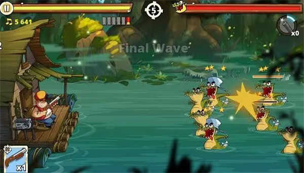 使用武器来攻击迎面而来的鳄鱼和蚊子,注意蚊子是会远程攻击的;