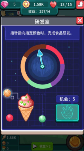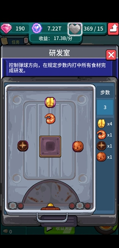 研发的过程还是比较有趣的,是一个弹球类型的小游戏,玩家们在游戏中需要在规定步数内让弹球集中全部的食材,这样才能完成研发。
